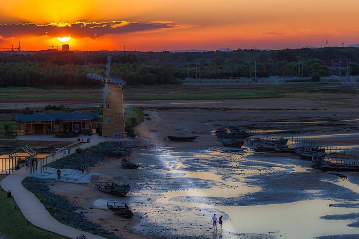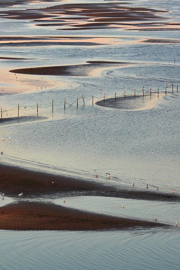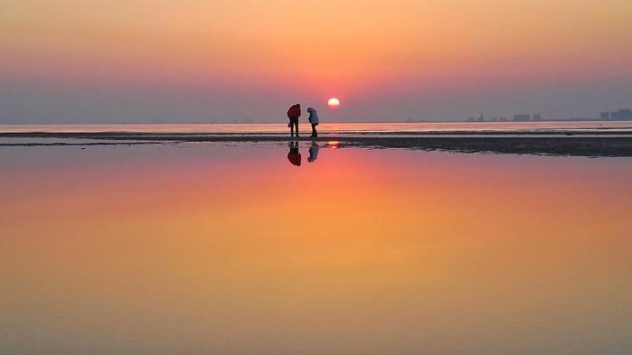 那里每天一次潮涨潮落,潮差很小,在一米之内,又因为滩涂很浅,所以退涨潮的面积又十分大,很壮不雅,用沙软潮平来描述最适宜不外了,你能够在早上来鸽子窝公园玩耍,看完日出还能够在滩涂上捡拾些贝壳和小螃蟹之类,也是放松休闲的一种体例啦。