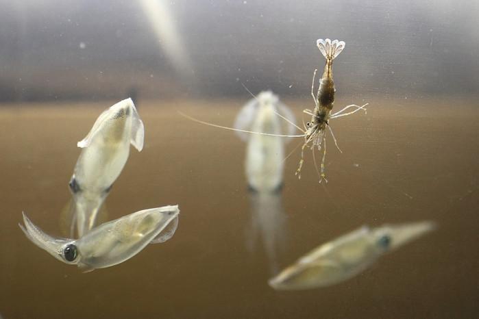 一只怀孕的小虾,钳子和尾巴精致标致,可惜被一群凶悍的家伙盯上 ,凶多吉少了。