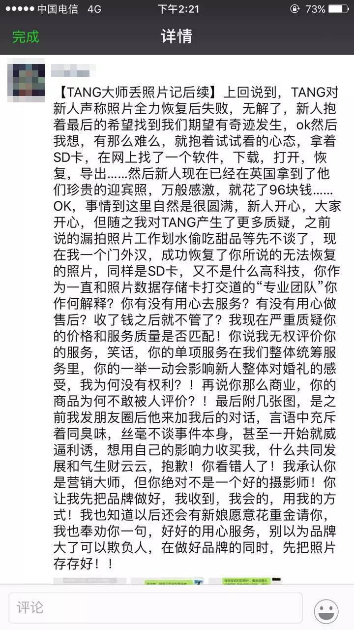 通过关系,我找到了TangVision盗图的那位“国外摄影师”,而且已间接向当事人证明凌鹤教师确实是当日收费拍摄婚礼的摄影师。
