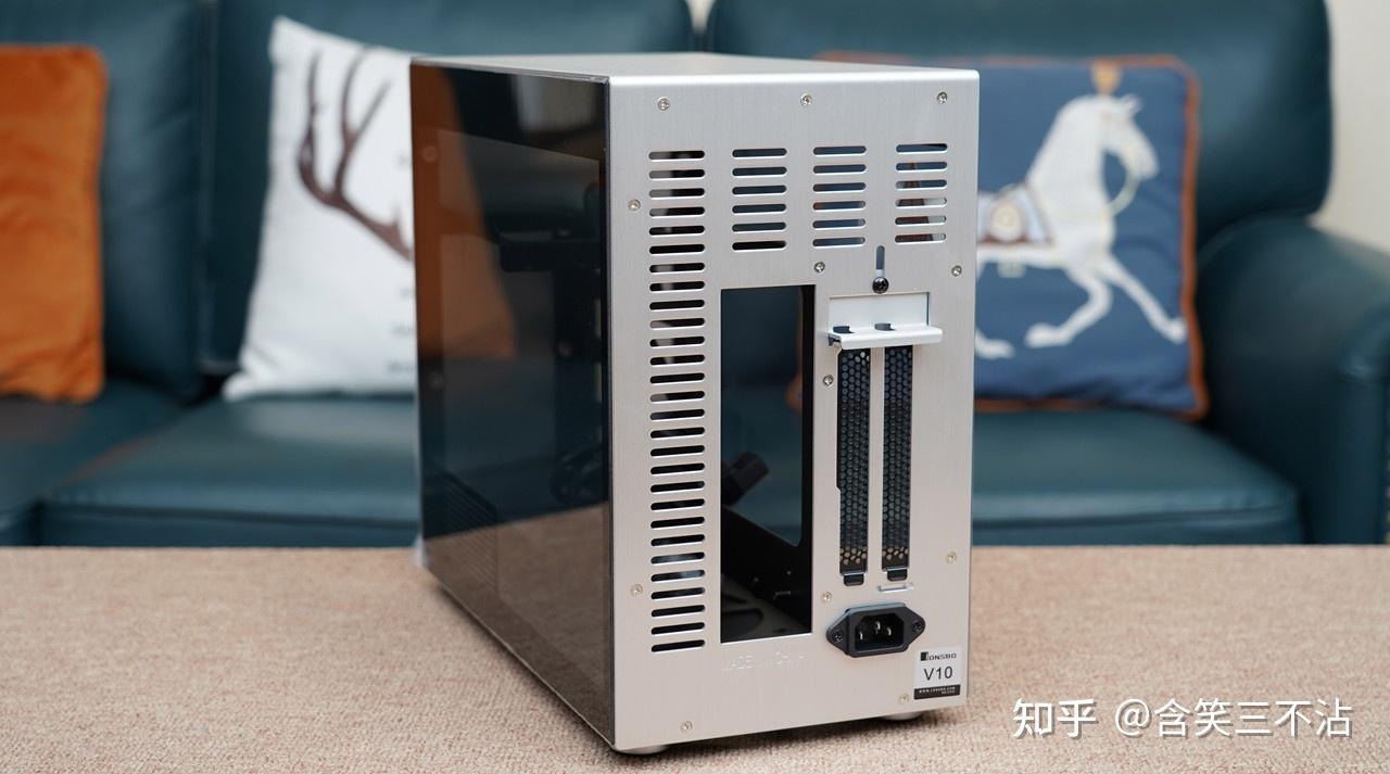 机箱尾部一览,能够看出,机箱接纳前(主)板后(显)卡的安拆体例,故而显卡只能通过耽误线竖置安拆。