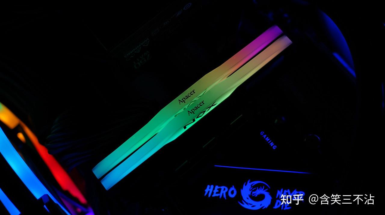 内存上部为高透光性导光条,下部为黑色铝合金马甲。