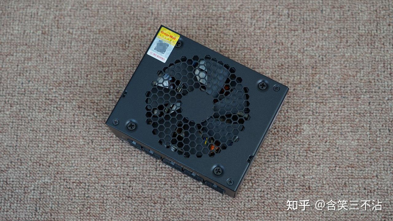 电源接纳SFX规格,体积十分玲珑,其内部接纳9cm超薄电扇,撑持主动启停功用,当负载低于20%时电扇停转,静音效果较好。