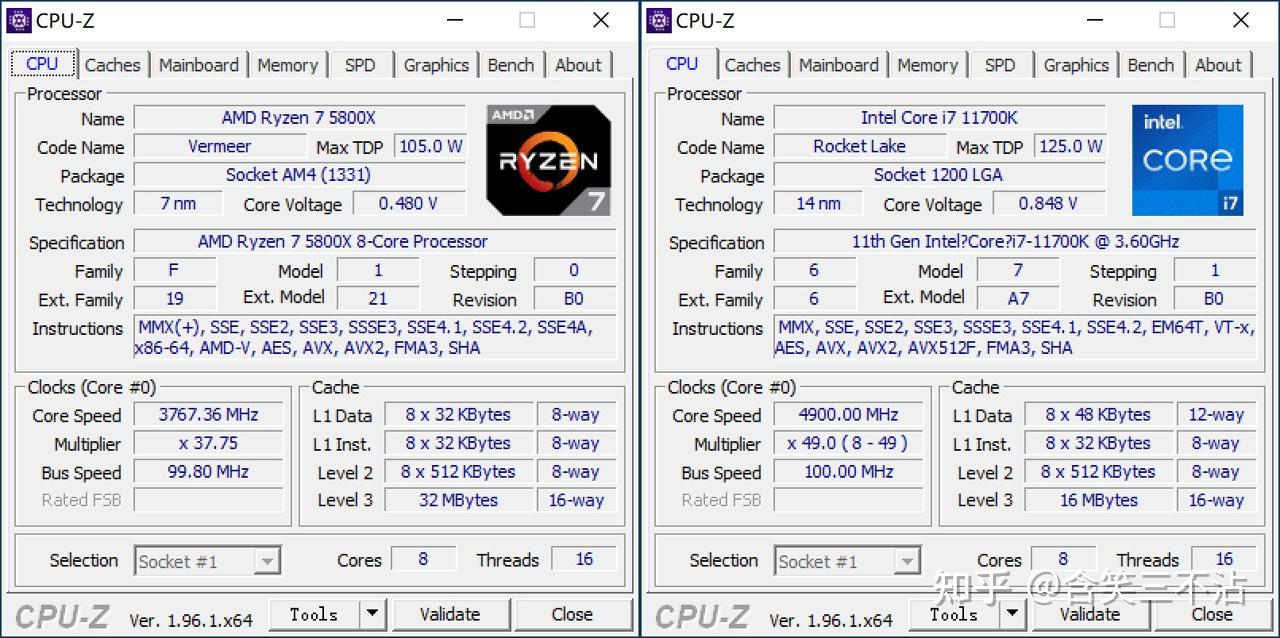 为了便于比照,那里参加了11700K的成就,下图为5800X和11700K的参数比照。
