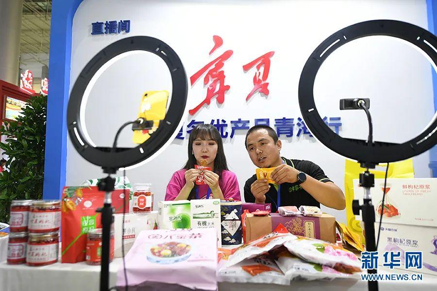 ▲宁夏名优特产曲播带货现场。图片来源:新华社