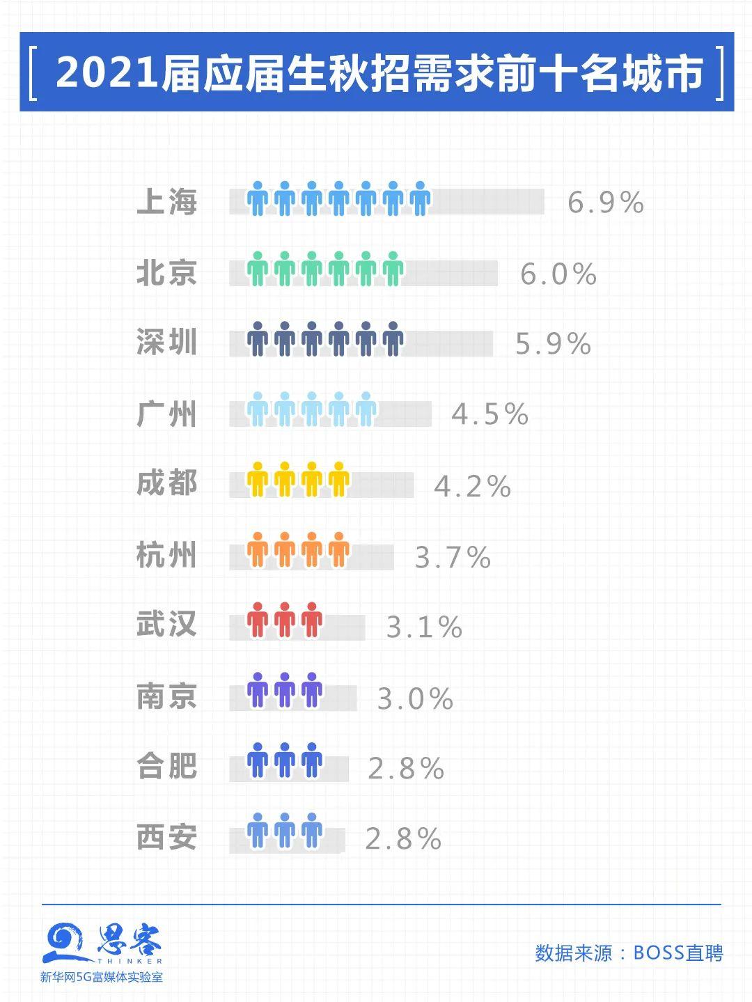BOSS曲聘发布的《2021应届生秋招早鸟陈述》显示,本年秋招早期人才需求回暖,较2019年同期上涨4.5%。从城S看,新一线城S对应届生的吸引力增加。