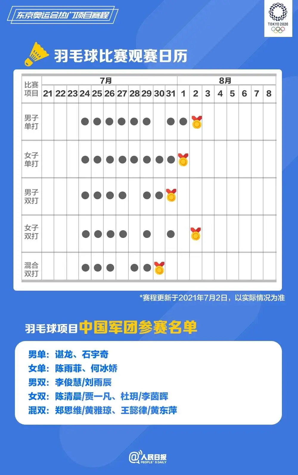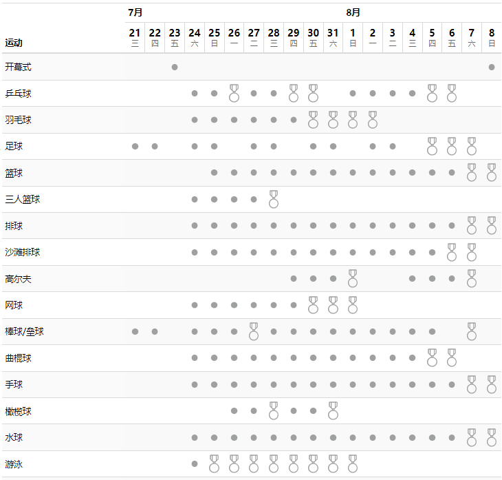 东京奥运会完好赛程表↓↓↓