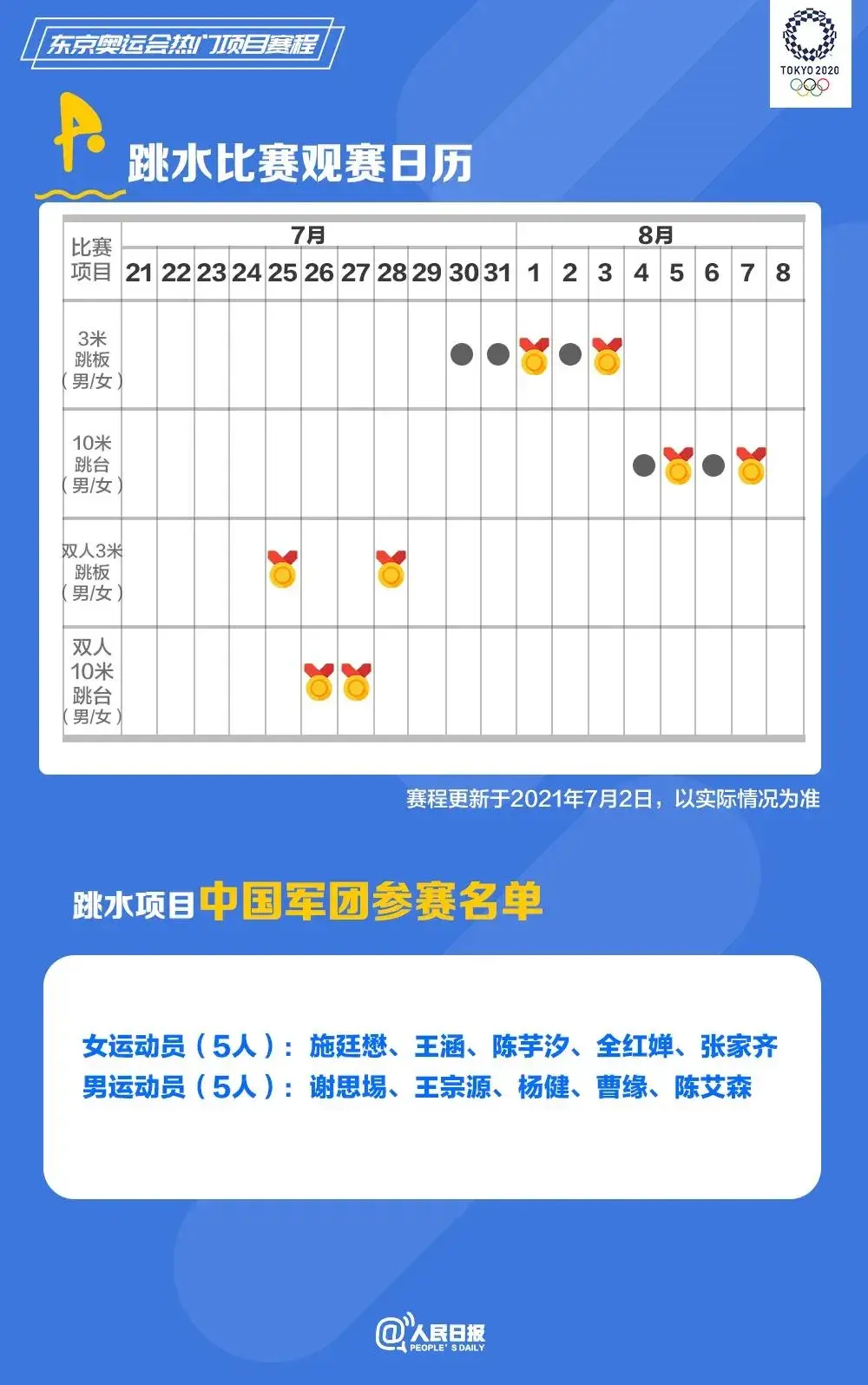 (注:本赛程表按照奥运会延期后的新日期造定,将来可能还会有调整。