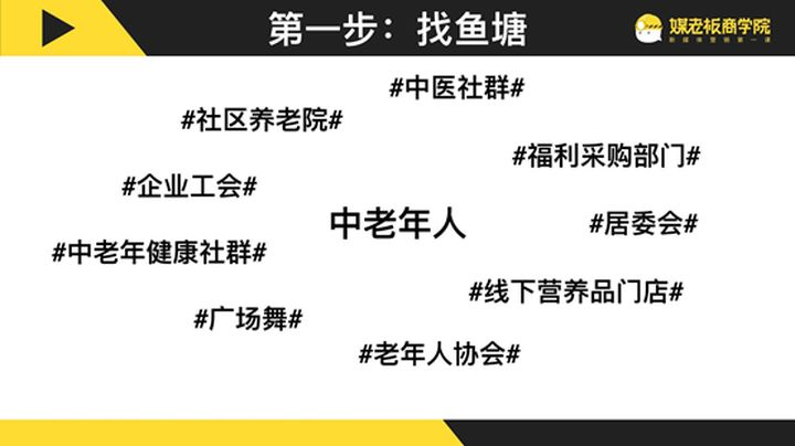 再好比,媒老板是一家专注于新媒体营销培训的公司,那么我们能够合做的鱼塘可能是谁呢?