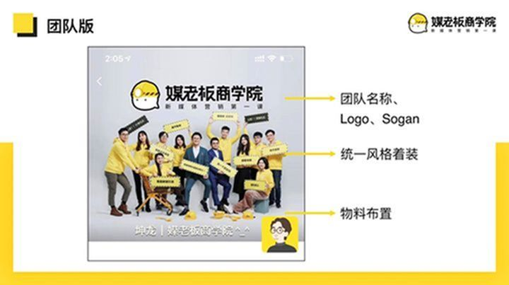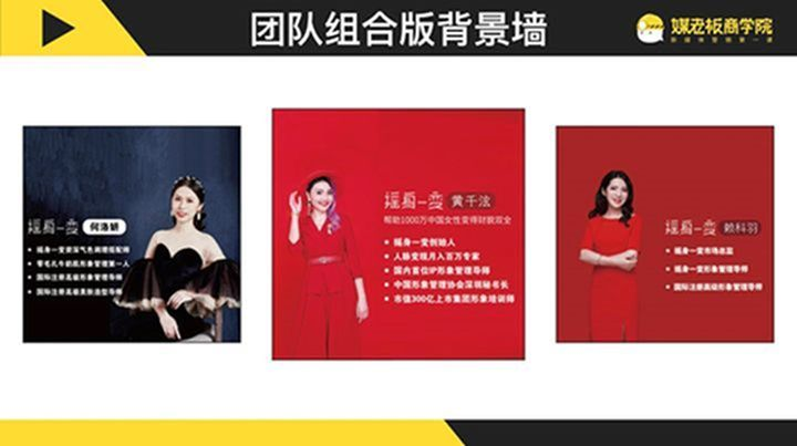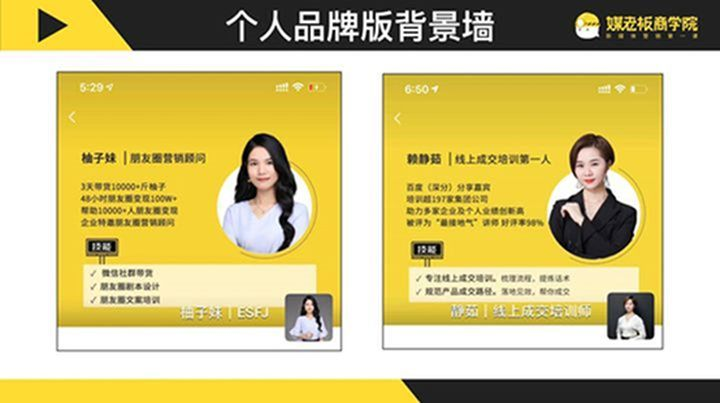别的,我们也会给我们媒老板的学员和教师专门造做伴侣圈的布景图,若是你看到黄底黑字的布景图,那就是我们媒老板的人了,好比我们专门讲伴侣圈营销的教师柚子妹,好比我们专门讲线上征询式成交的教师赖静茹。我们接下来看一个尺度版的给各人拆解一下。