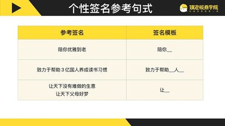 第三类,愿景号召。好比我们线下课学员虫虫,她的签名是愿全国没有难带的孩子,不急不候、不忙稳定,帮忙1000万家庭聪慧育儿。那句话就很有号召力,也能表现开创人的情况。