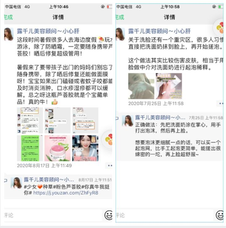 处理问题式对话,如给粉丝科普一些行业常识,若何有效的防晒、抗痘、补水等,还有日常平凡的产物研发过程。