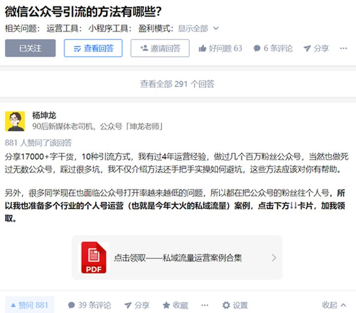 简单介绍本身,我是坤龙,90后新媒体老司机,媒老板商学院开创人,处置新媒体9年,专注新媒体营销和私域流量的培训,目前已经在知乎答复上百个问题,引流数万人,知乎粉丝66000+。