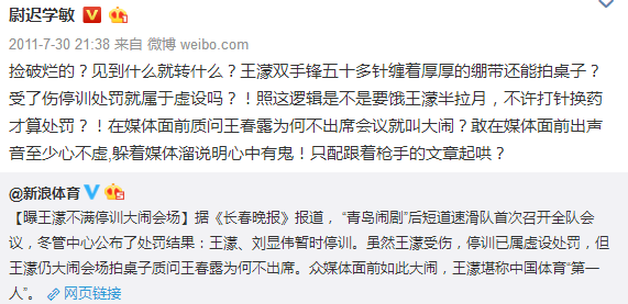 那段时间,媒体的各类造谣纷至沓来,锋芒曲指王濛,似乎必然要塑造一个奥运冠军公开与国度队匹敌的形象,没有人领会详细发作了什么,只要短道速滑专项记者尉迟学敏隐晦地发过微博: