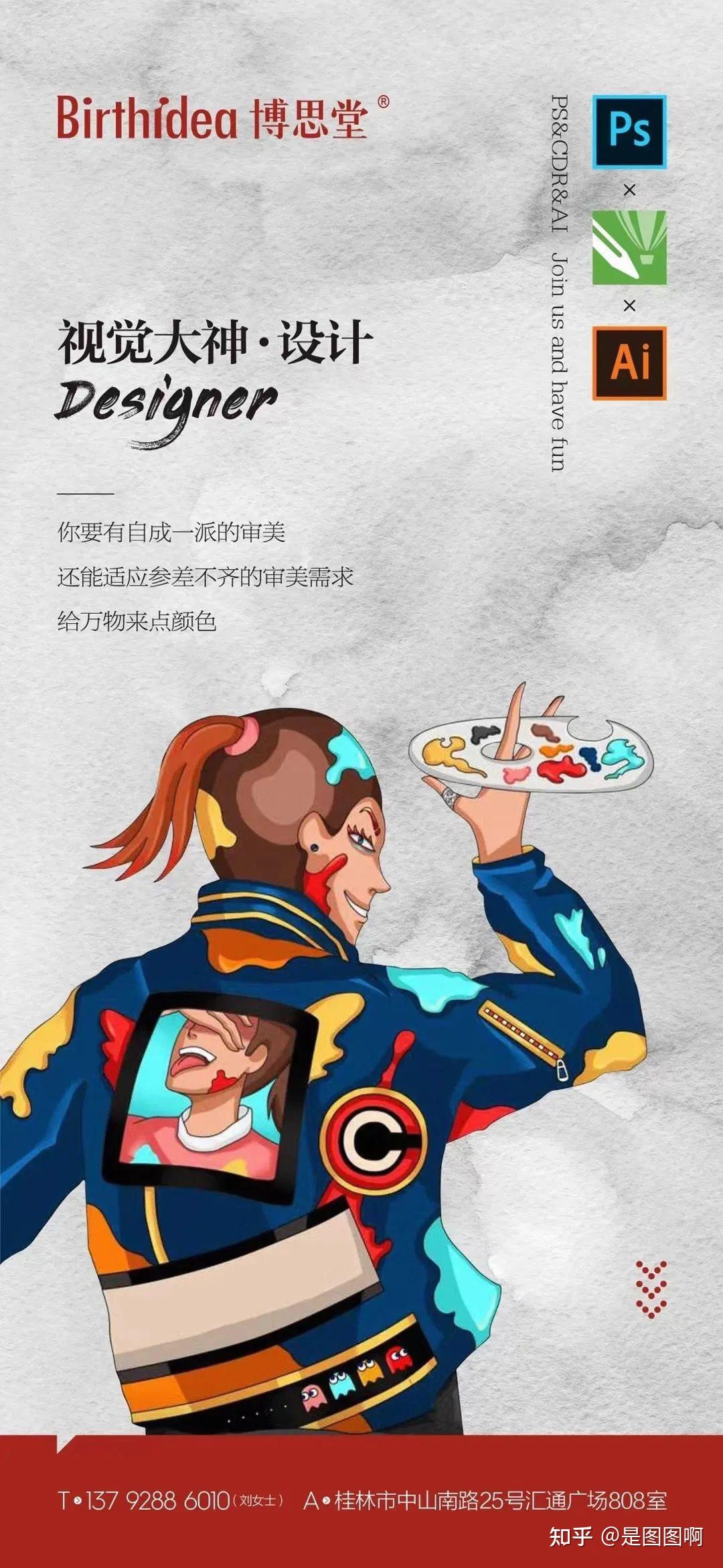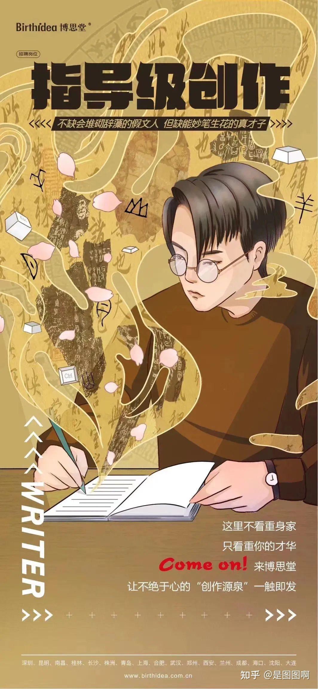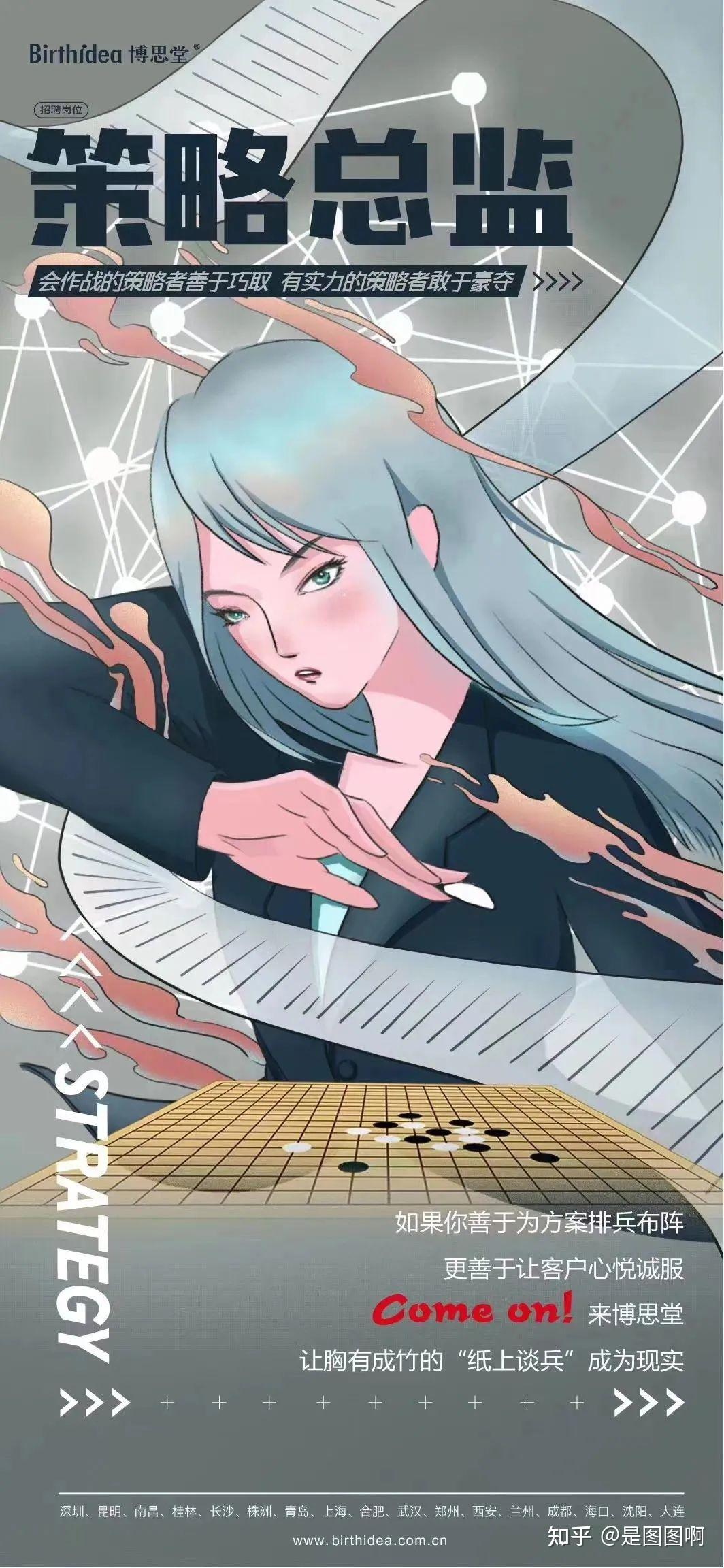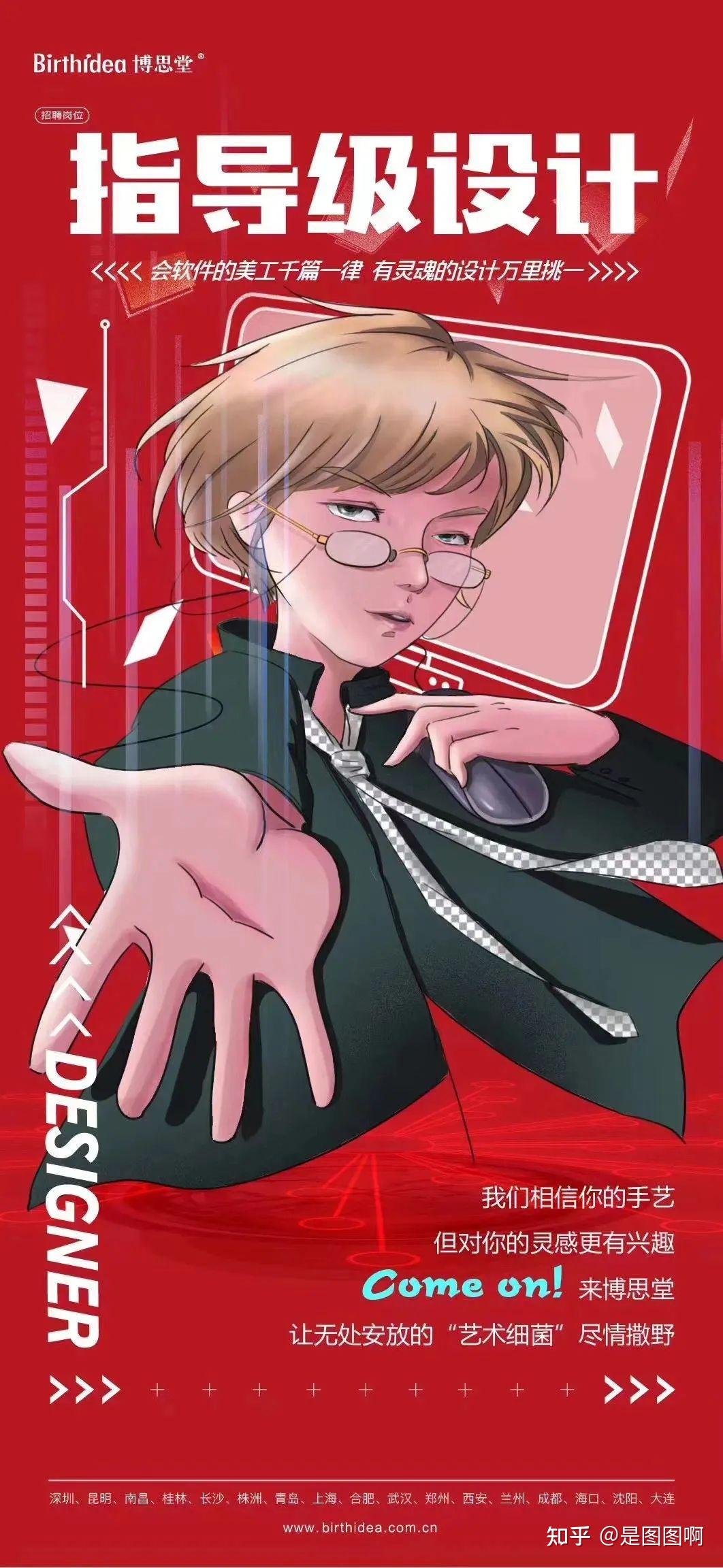 除了大字报外,如今良多公司也会接纳插画或者漫画的形式来设想雇用海报,那也是当下最受年轻人喜好的气概。