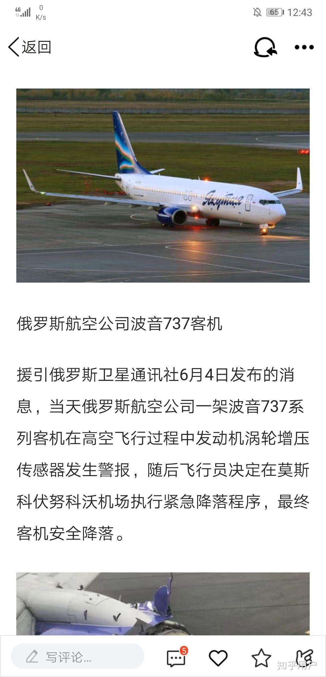 6月4日俄罗斯UT航空一架波音737因引擎毛病迫降后,留意看第二段内容和配图
