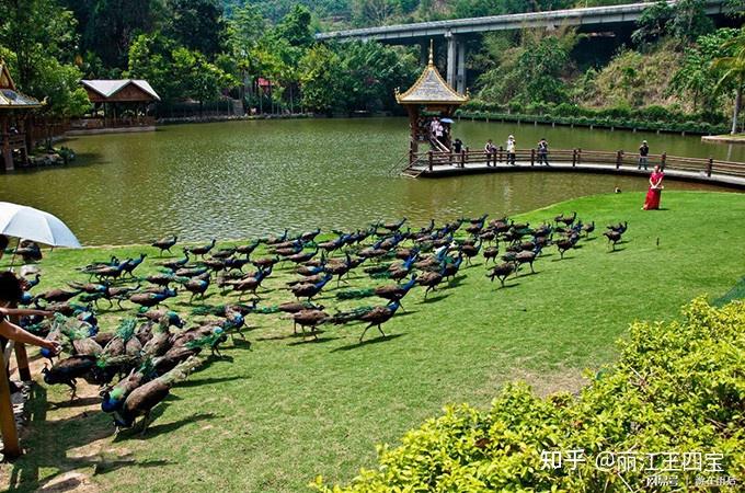林,到处可见遮天蔽日的苍天大树。 院内有50多个景点,并且每天都有孔雀放飞的演出。气候清新,与情人安步公园,赏识美景,旁观演出,此时再来一杯椰子汁就更完美了~~