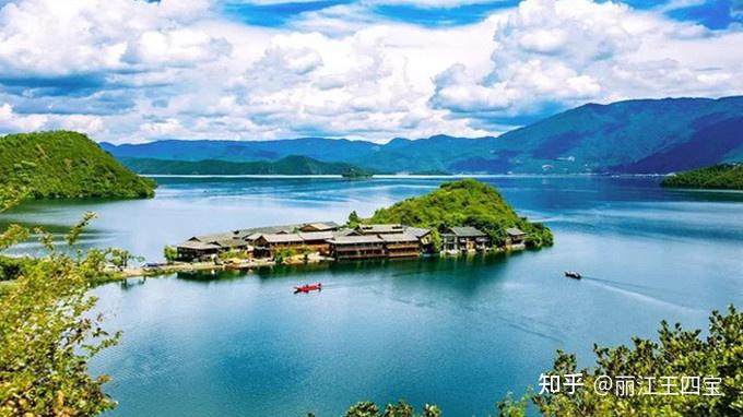 是湖中小岛,岛屿的一侧是石笋遍及的天然船埠,上山顶的巷子上有许多杜鹃花以及野樱桃树。岛屿上还有藏传释教寺院——里务比寺,在岛顶还有一座白塔,在那里里,你能够看到差别角度的泸沽湖美景。