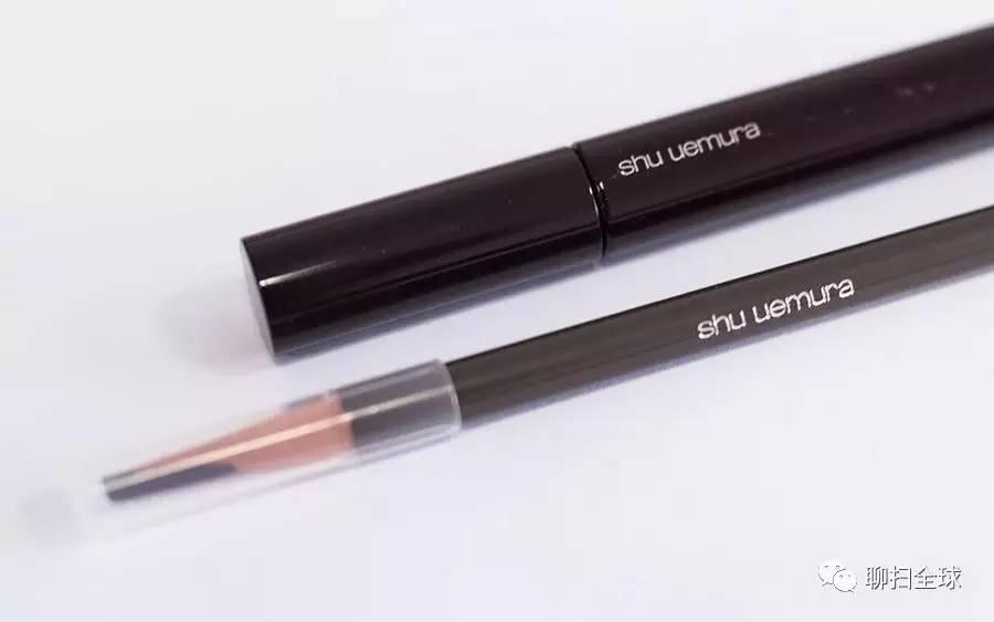 化装师在用Nars眼影盘画完眉毛后拿出来出名的植村秀砍刀眉笔。学画眉的妹子们应该已经人手一只砍刀眉笔了吧。可选色号丰硕,是许多彩妆师的更爱,奇特的外型在画眉时能够轻松勾勒出精准的眉形,强烈保举动手!不会削笔的能够拿去专柜,免费帮你削。