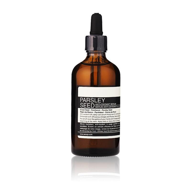 景甜用的精华出自伊索,那款据小编估量可能是伊索当家的香芹籽抗氧化精华。