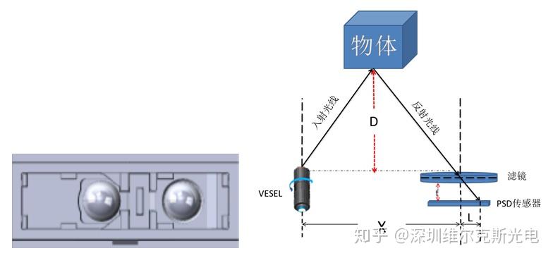 如下图所示,其工做原理为激光源发射到物体外表后,发作漫反射,反射到PSD传感器长进行光信号的承受,再操纵CCD图像处置发射与承受的时间差,通过三角函数计算后得出与物体之间的间隔。红外测距传感器可以在不需要反光板或是反射率低的情况下就能实现较远间隔的丈量,同时它还具有丈量范畴广,响应时间短,整体构造紧凑,安拆便利的长处被普遍地应用在人工智能,汽车雷达,无人驾驶,工业造造,农业种植,国防军事等等重点范畴中。