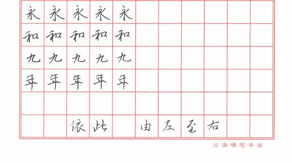 两面重,中间轻,起锋若有好笔是很简单的时,用水笔欠好出锋时,我习惯写时敏捷的一点,然后长横,紧领受锋。