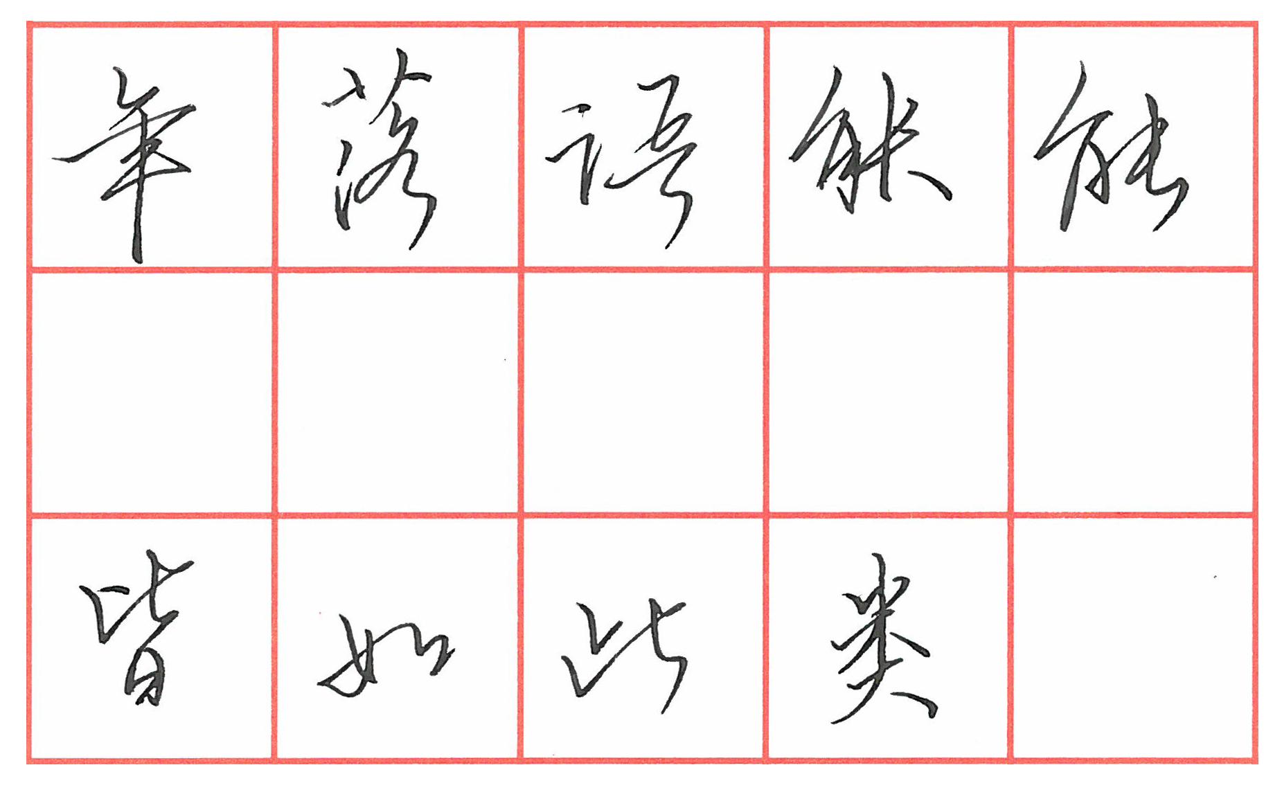 2、笔划:那算是入门之后的了,行书以至楷书单项简化一些偏旁部首,没此外体例,多练多记,多“找差别”。下图为“年、落、语、能”皆出于《圣教》、《白水》。
