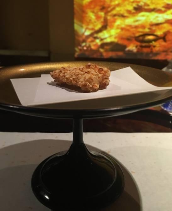 鲜甜的海胆上面挤了清新甜美绝不恶人的慕斯,再搭配上香馥馥的栗子,颇有些分子料理的味道。看来,割烹游也并非那种常有的固守传统不放的铁板烧老店。