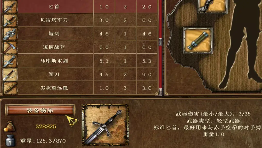 与此同时,游戏中存在轻重中三品种型的近战兵器,每一个类型的兵器城S有2~3把差别的兵器。每种兵器不单单面板和外型各有差别,按照每种兵器的类型和重量,消耗的精神和合适的攻击也各不不异。