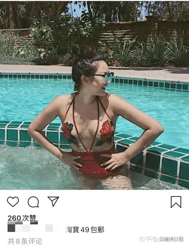 她还曾在ins上,穿49块淘宝包邮的泳拆秀身段。