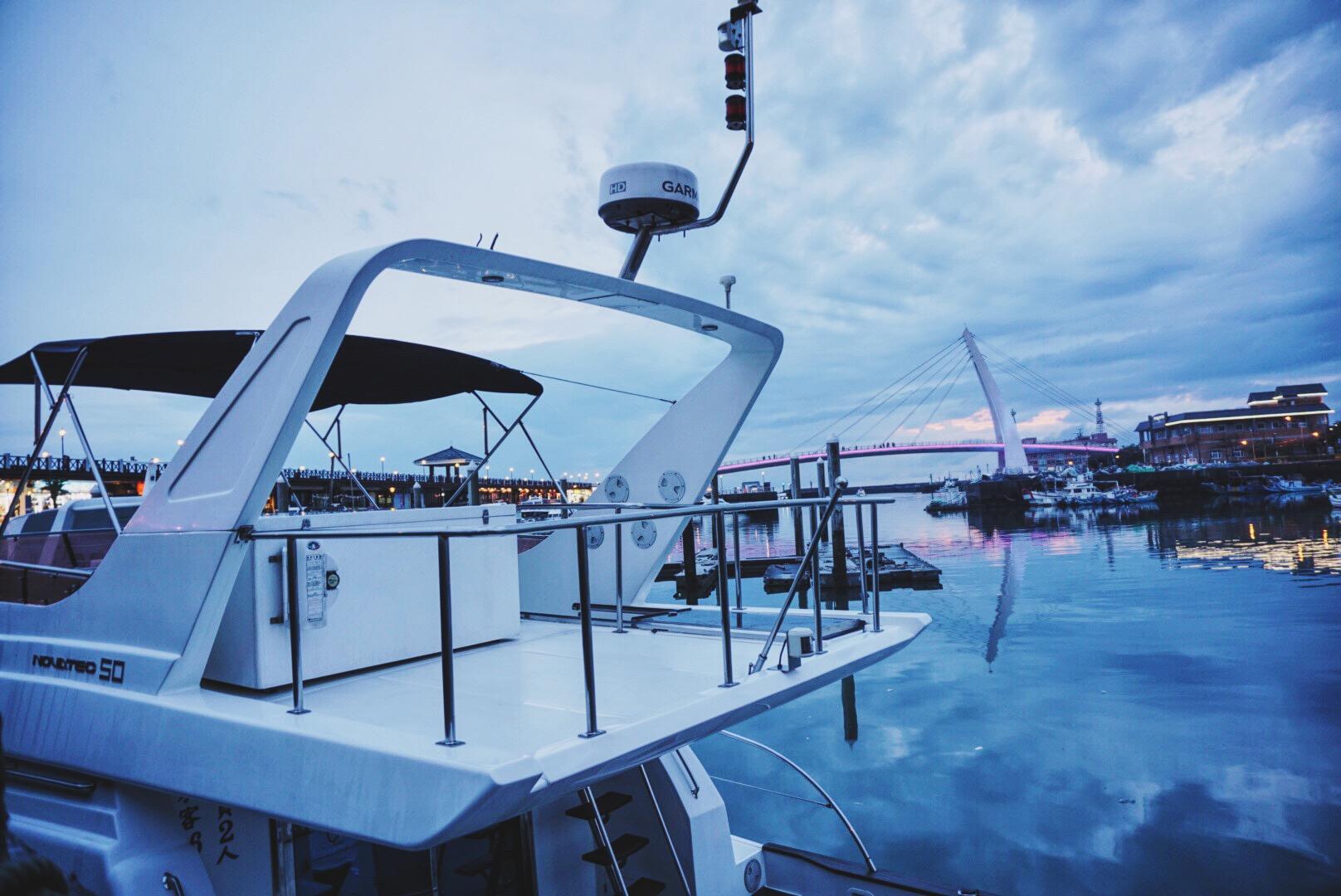 淡水的渔人船埠(淡水船埠)很美,从淡水老街能间接坐船过去。他们去的时候已经是薄暮了,刚下过雨的天空蓝的不像话,很清洁。上几张图。