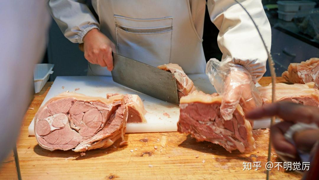 肌理纵横的羊肉切面,闪着油光的卤肘子,觉得很好吃的样子~
