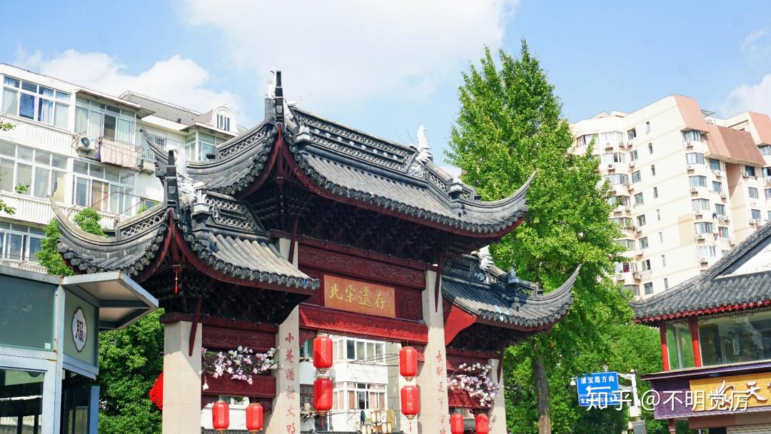 白玉上海街的入口有三个庞大的牌楼立着,前面刻着白玉上海街,后面刻着“北宋遗存”。