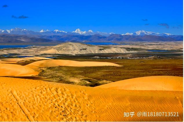 顺着沙丘往里走,踩在松软的沙丘上,拖着繁重的程序,步履困难,一步相当于走三步。大约走10-15分钟,才气找到更佳位置,站在金色沙丘上,望着远处的雪山湖水。在喜马拉雅山脉与湛蓝天空映托下,会看到一股水晶般的冷蓝,隐现于沙丘的尽头处,它就是雅鲁藏布江上游——马泉河。