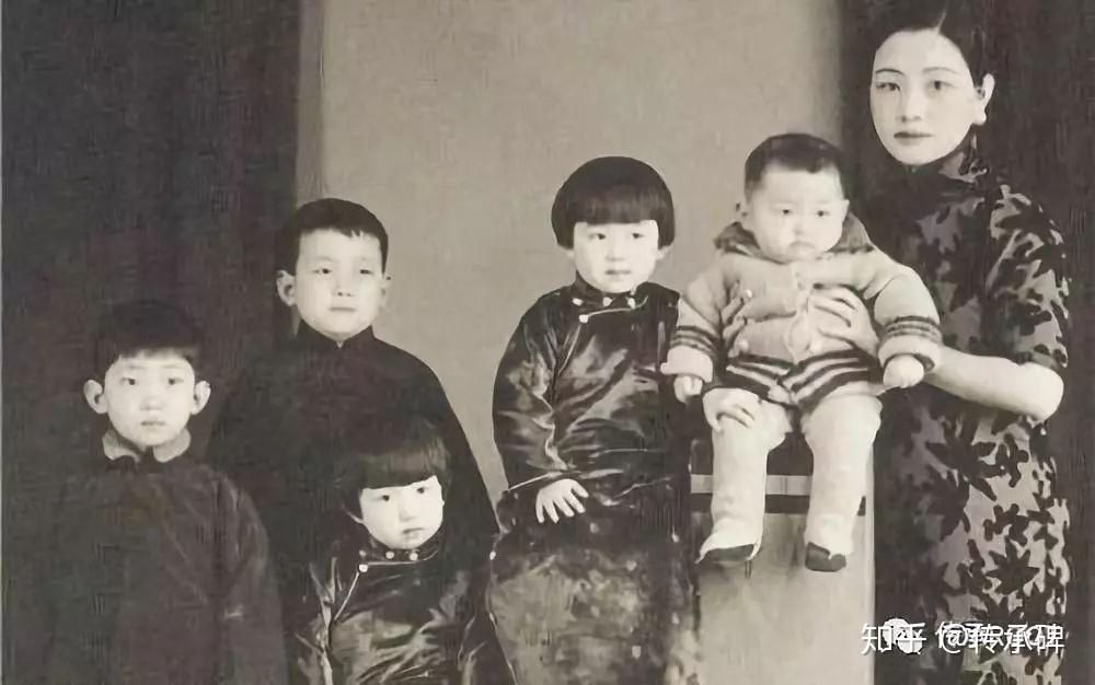 福芝芳嫁入梅家后一心一意相夫教子,放弃了演戏生活生计,图为梅兰芳和老婆福芝芳及儿女的珍贵合影