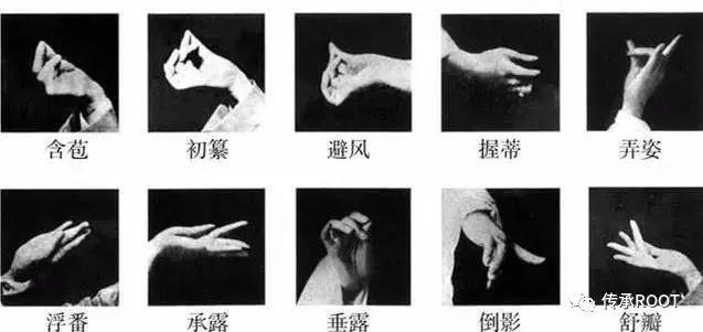 梅兰芳探寻出了丰硕多样的演出技巧,他从龙门石窟和山西晋祠仕女造像中罗致灵感,缔造了千变万化的旦角手姿,配以齐如山的各类定名:含苞、拂云、斗芳、露滋、挹翠……