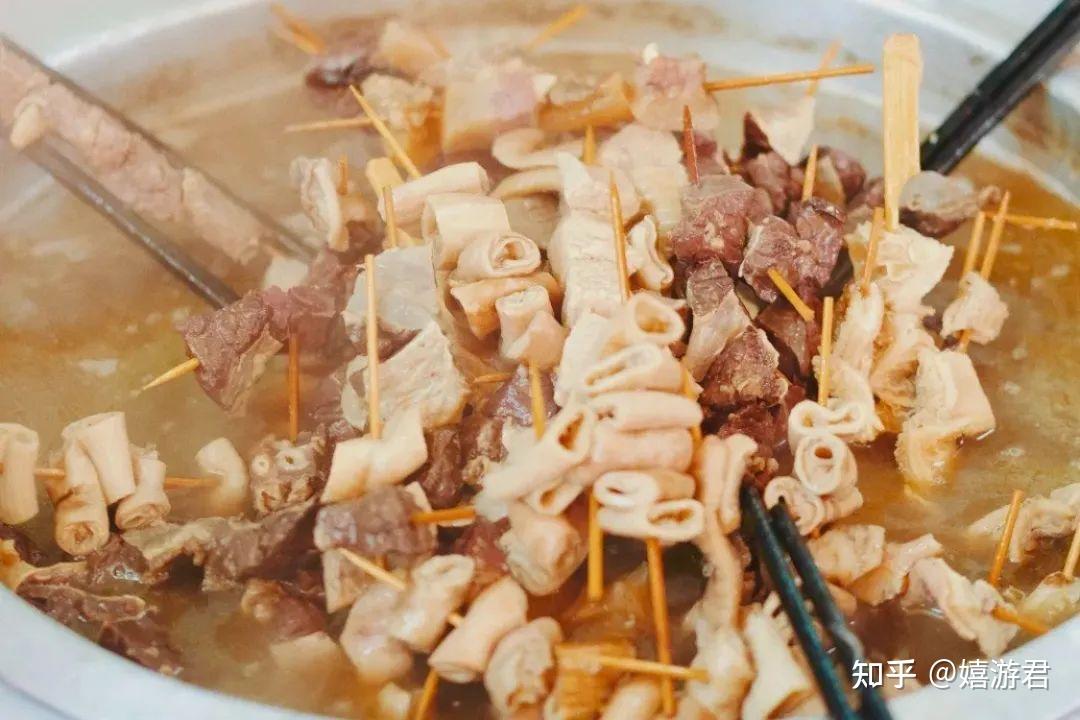 中午想欠好吃什么的话,选另一家牛杂店总没错的。店门口就跟吃关东煮一样,想要吃什么就点上一串,老板四肢举动利索地把早已入味的食材拆了签放进碗里间接就好吃了。