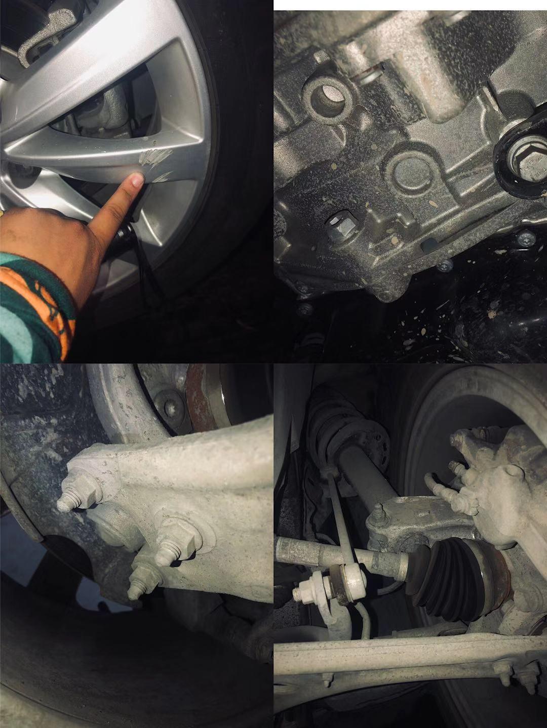 路试完上架,底盘连结了本来的样子,策动机变速箱以及毗连处没有焦油,元宝梁螺丝,减震器,下摆臂螺丝均没有拧动的陈迹,阿谁底盘没啥弊端。