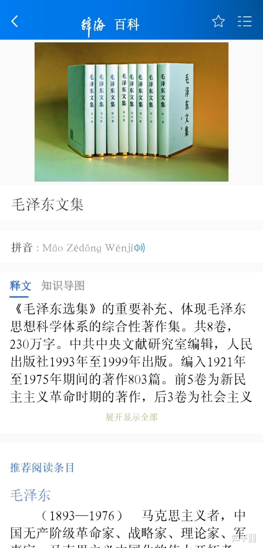 值得提到的是,辞海App的内容是第七版的,第一版(1915年启动,1936年出书)到第六版(2010年)的内容也有网址
