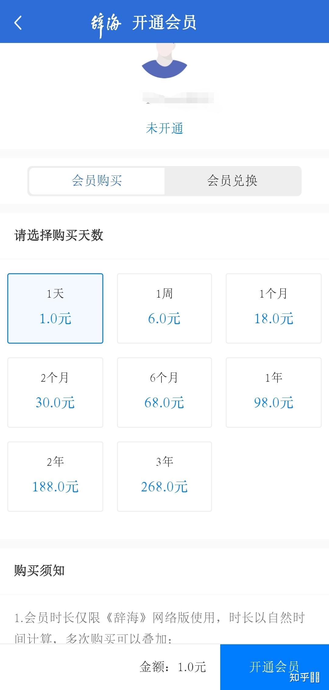 价格:买纸量书送5年会员;年费98元,日费1元,周费6元,月费18元,没有末身买断价(进修强国App的强国城和App商城里有个积分兑换,末身兑换太难了);不开会员每天可免费查6个词条,并且经常免费送会员,通俗人够用了。