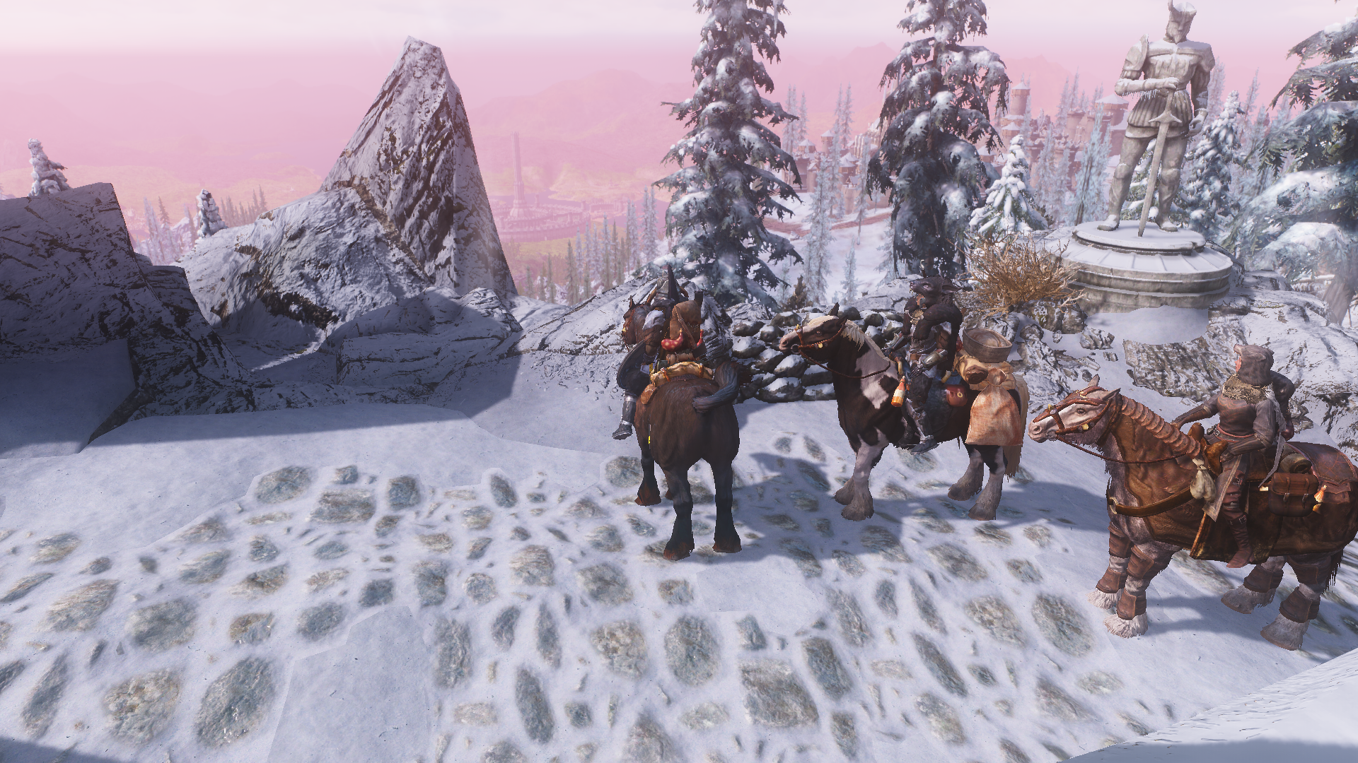 (场景出自Beyond Skyrim: Bruma。看到了吗B社,第四纪元的帝国,免费的Horse Armor!)骑马战斗强化,马鞍和马甲,NPC骑马,马驮行李,马哨,马AI提拔等,骑马体验大大提拔