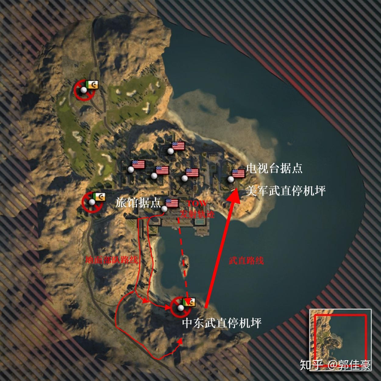 中东:开局冲上武曲后驾驶员带上炮手向电视台标的目的飞近10几米即可向电视台台顶发射TV导弹,测验考试打掉还未起飞的美军武曲;或是间接快速所短间隔近地压造停机坪以及空中防空安装,并协助本阵营队友夺下该旗号点;更激进一些压造住顶楼后炮手跳下本方武曲测验考试掠取美军武曲,并带回大本营从头组队;美军:同样的武曲驾驶员及炮手测验考试曲奔中东停机坪停止压造以及武曲的掠取;本方空中队伍也可操纵旗号点的军用吉普车开到中东停机坪附近停止干扰。