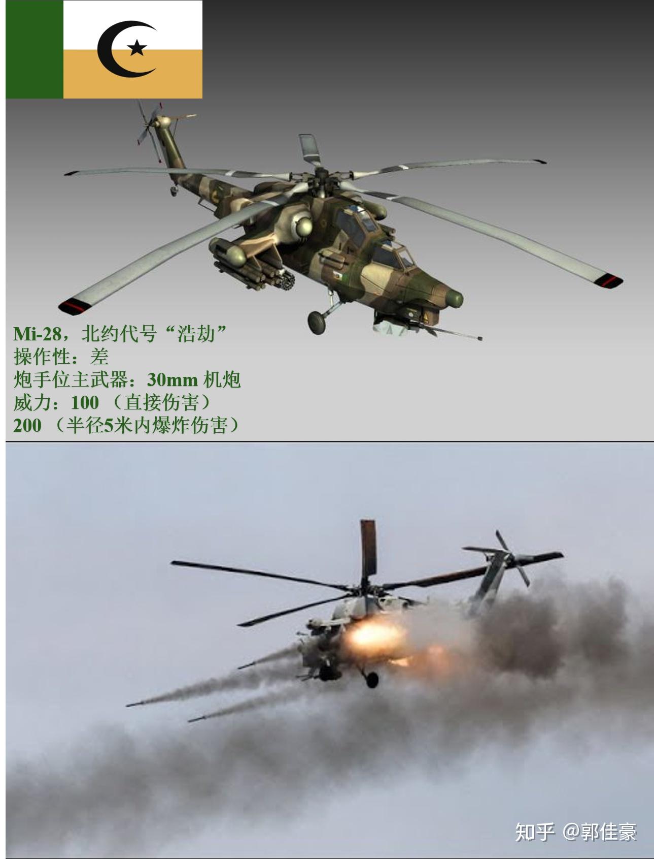 上半图及兵器数据出处不异;下半图照片来自Youtube视频Mi-28 helicopters in Syria