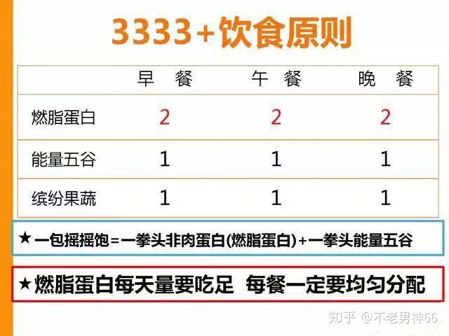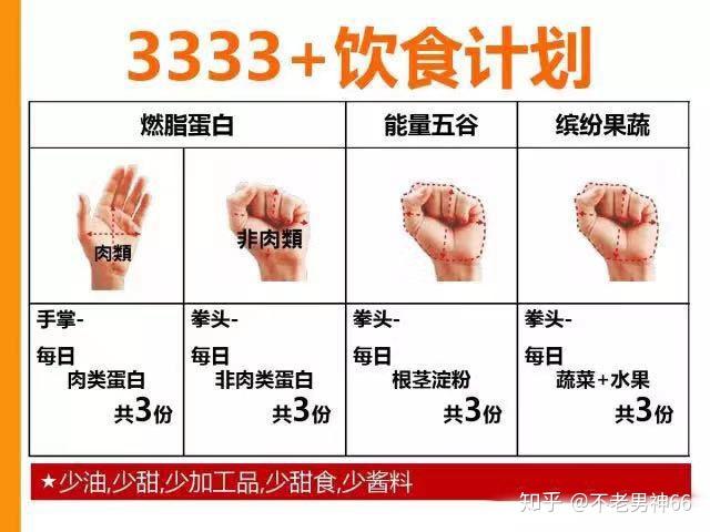 晓得了上面的“一进三出”的原理,就晓得,“管住嘴”是有多么的重要,但,那里所说的“管住嘴”不是要求我们节食,相反,科学的饮食不雅,要求我们不成节食,必然要吃,并且还要科学安康地吃:每天三份碳水化合物、三份蔬菜生果、三份来自肉类、鱼类、奶成品或蛋类的优良卵白量,那就是 3333+饮食原则。