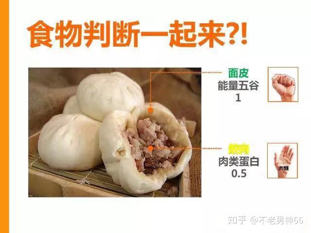 包子皮(能量五谷),肉馅(肉类卵白),鸡蛋豆浆(非肉类卵白),桔子(缤纷果蔬)