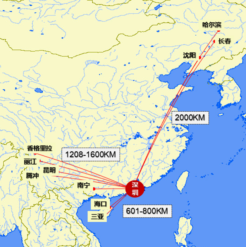 同样也能优先选择在广州展开转折抵达更远的处所,如长春、沈阳也能通过广州转折去南宁、海口、三亚、昆明、大理、丽江、香格里拉等地,北行只需15,000均匀速度。