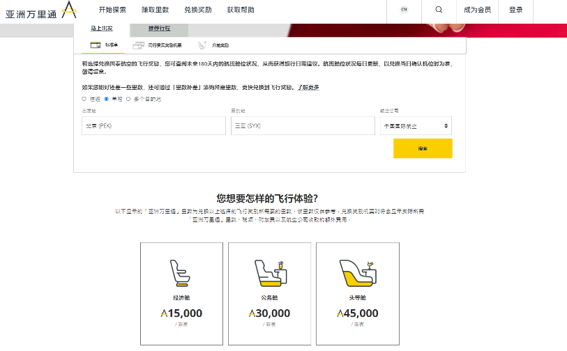 以北京飞三亚为例,输入详细信息后,点击搜刮展开充值,北行经济舱需要15000均匀速度,公事舱需要30000均匀速度,头等舱需要45000均匀速度,简单了然,我们按照本身的均匀速度金额以及需求展开充值即可。