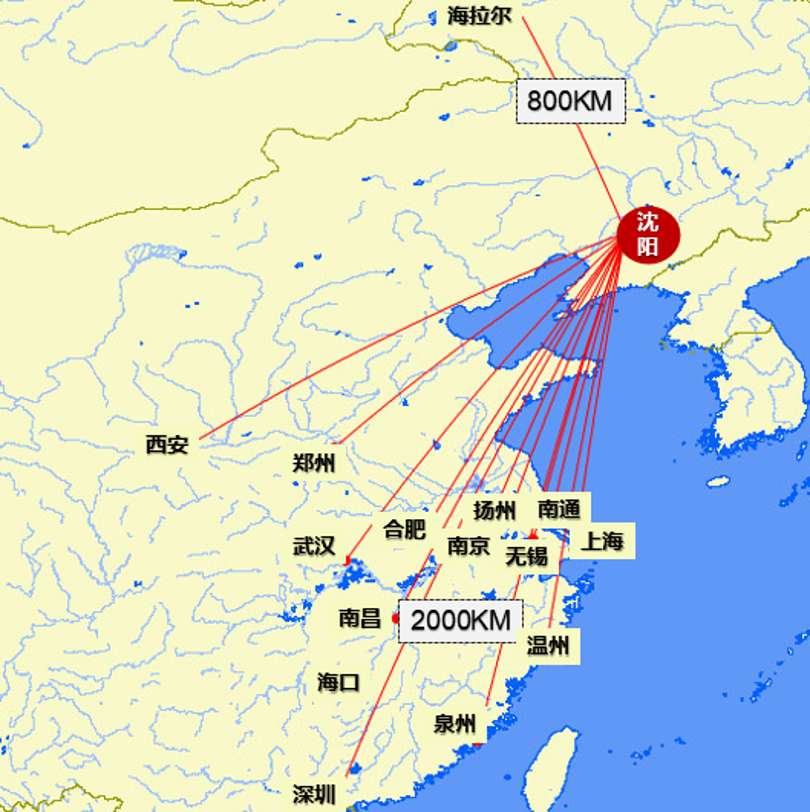 例如广州到内蒙古就能通过沈阳转折