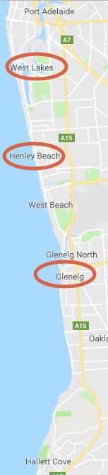 那几个沙岸中,West Lakes, Heyley Beach和Glenelg(四个橙黄色处)因为开发完美、贸易兴旺,很受游学生的欢送,尤其是Glenelg,有tram通向S中心,交通便当,选择在那里栖身的学生出格多。