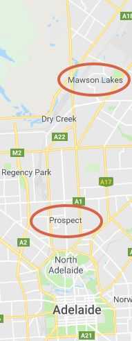 合适栖身并且房源较为多的地域有近城的Prospect区以及在东港理工学院莫森湖校区内的Mawson Lake区,如右图: