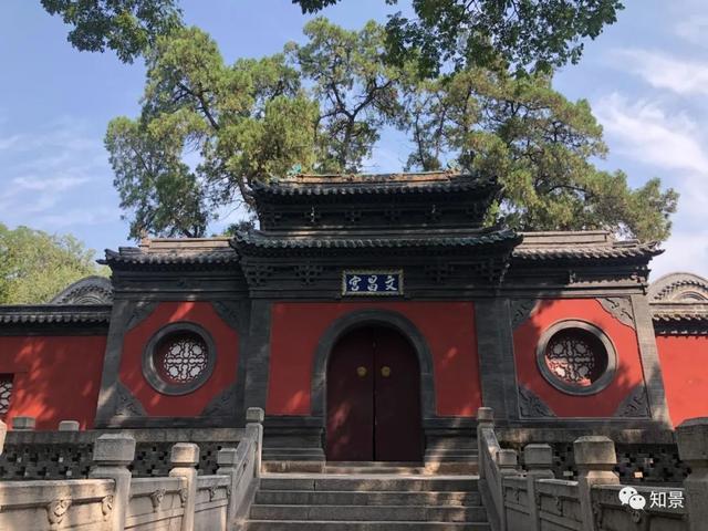 文昌宫建于清乾隆三十八年(1773年)。蓝天绿树红墙灰瓦,相得益彰。